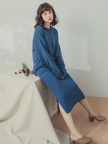 針織馬甲2件套長袖上衣休閒針織毛衣女潮春秋韓版法式開叉【淘夢屋】