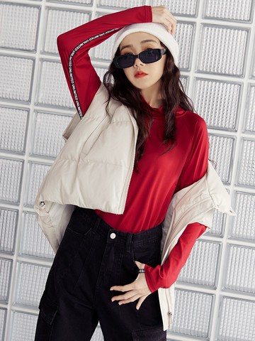 R字寬鬆短版T恤-白底杏標【KY19173】