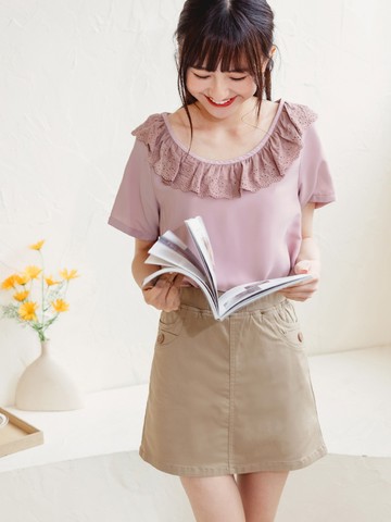★五折價$530★糖罐子【E65434】蕾絲領荷葉袖口毛蕾絲上衣→預購