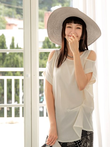 純色觸膚涼感長版挖肩抽皺短袖上衣