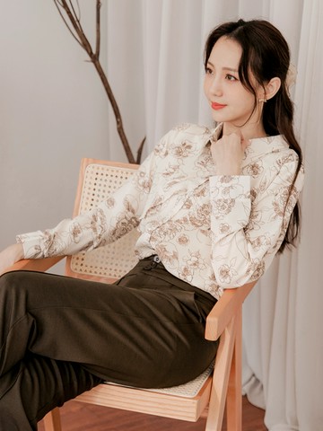 ILEY伊蕾 復古貴氣巴洛克印花襯衫上衣(杏色;M-XL)1223061537