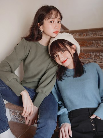 QQ毛衣.多色系不刺膚澎袖絲光棉針織上衣