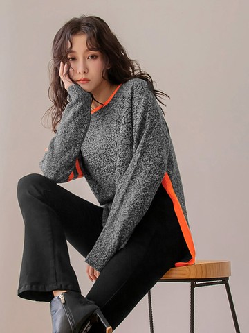 寬鬆V領飄帶毛衣-深灰【KT224714】