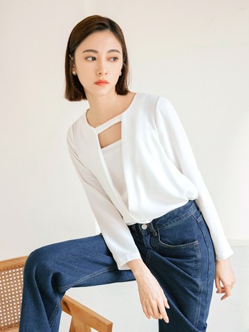 輕氧棉斜裁設計上衣
