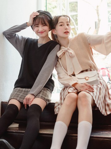 撞色V領學院風針織背心
