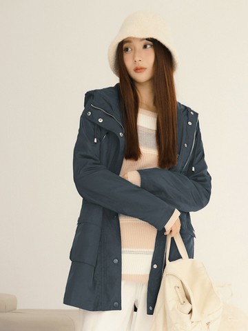 Hollister 經典鋪棉防風防潑水連帽風衣外套(女)-深藍色