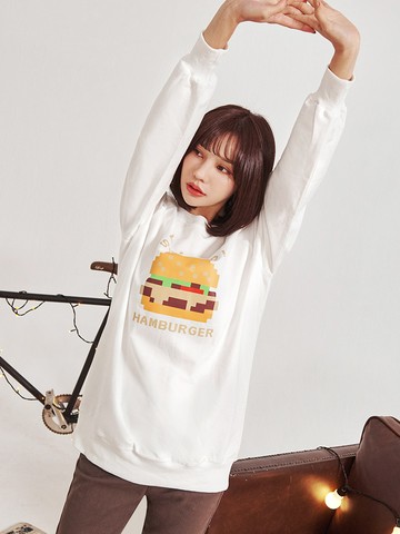情侶系列-漢堡印花大學T(女)