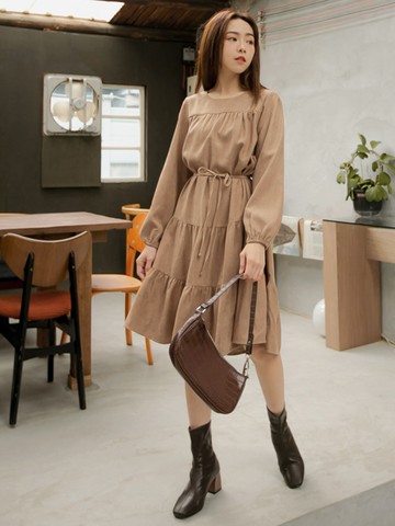 (S) fashion union荷葉邊杏色洋裝