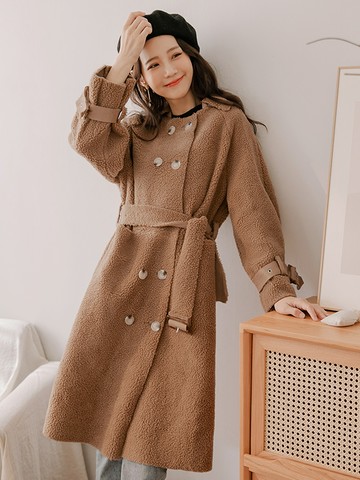 OB嚴選-柔軟麂皮翻領腰綁帶長版外套《EA3906-》