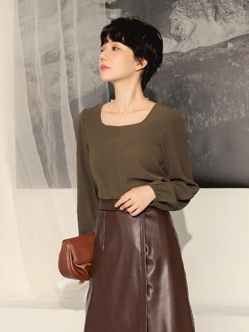 方領假排釦緹花長袖上衣 MISS