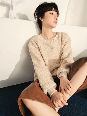OB嚴選-假兩件QQ絨毛落肩寬版長袖大學T