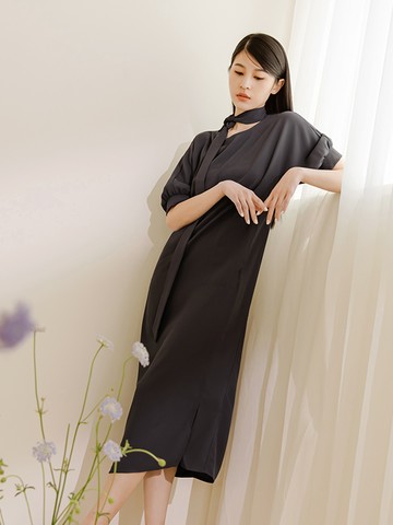 Shiyue_時月不規則抽皺洋裝_CLD028_黑