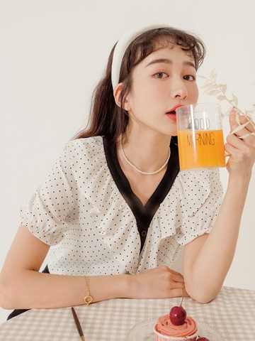 V領波點荷葉造型不易皺開襟上衣