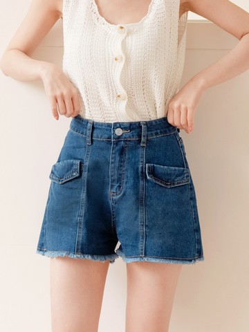 OB嚴選-造型口袋車線不收邊水洗牛仔短褲《BA6713-》(S)