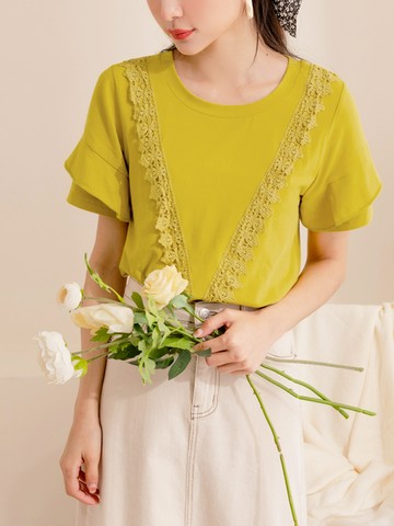 浪漫鏤空蕾絲荷葉造型短袖上衣