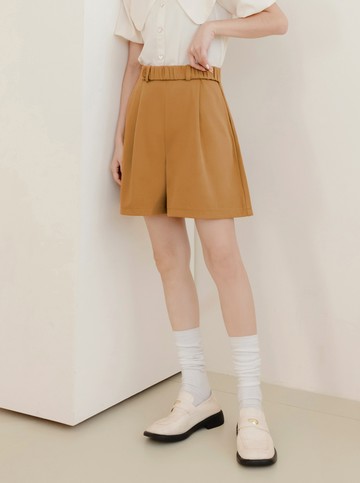 QUEENSHOP_F 女裝 簡約百褶高腰五分短裙-米S/M/L 現+預 【03010917】