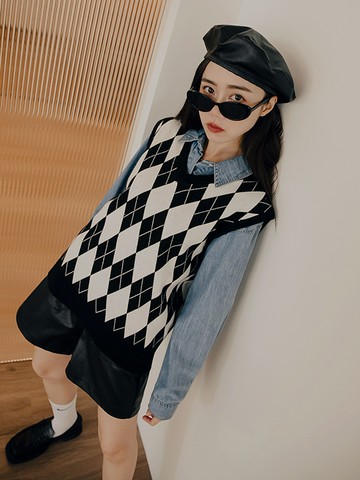 ML005 Twinkle Argyle 閃耀菱格紋不對稱亮片設計襪