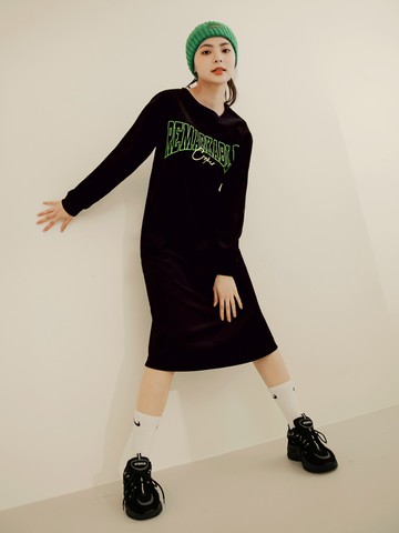 女裝 小熊刺繡翻領長袖洋裝-黑色