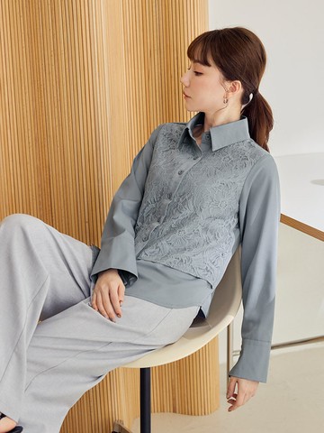 層次感蕾絲荷葉邊糖果袖排釦襯衫(0F001622910) - Samansa Mos2