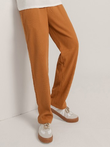 彈性坑條針織V字腰頭喇叭褲-OB大尺碼