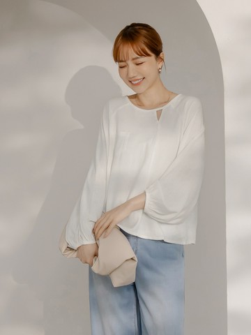 棉麻造型開口泡泡袖上衣