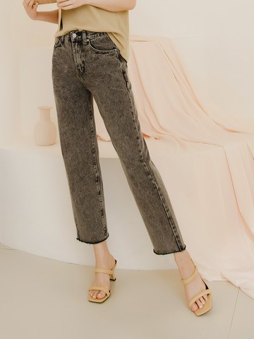 A|復古風線條刷色水洗牛仔寬褲(兩色)