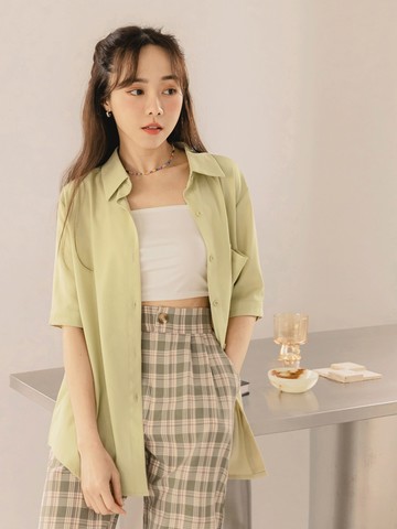 柔和格紋配色長襯衫