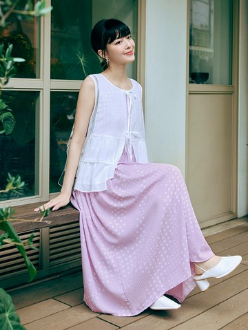 雲朵自訂款-大U領立體織紋背心短洋裝