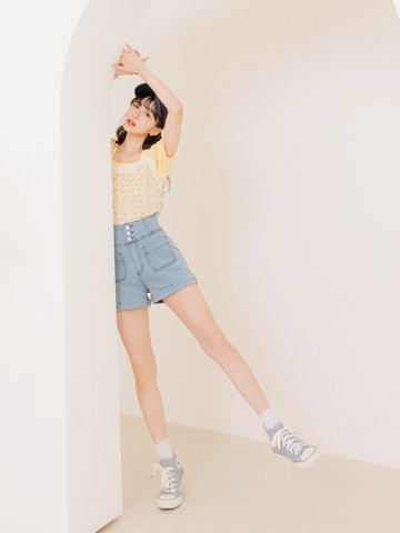 YoungGirlDay美式辣妹性感低腰緊身包臀卷邊顯腿長牛仔短褲熱褲女