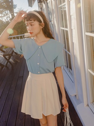 甜美大領片愛心釦拋袖開襟上衣