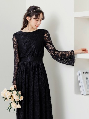 【sol.owen】韓國進口 唯美全蕾絲鉤花松緊高腰長款半身裙