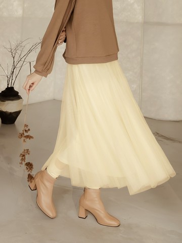 壓褶層次腰鬆緊長紗裙-OB嚴選