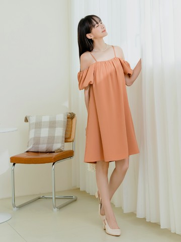 細肩平口領片傘襬小禮服洋裝