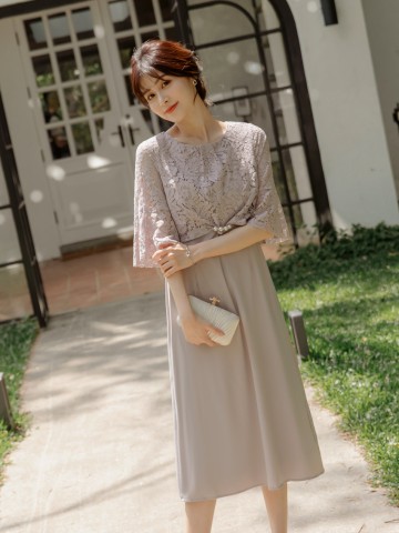 蕾絲高定晚禮服輕奢女裝高級感V領修身中長款氣質連衣裙夏女神范