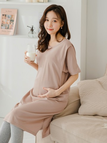 女夏莫代爾孕婦短袖睡裙哺乳衣產后月子服連衣裙喂奶衣家居服睡衣