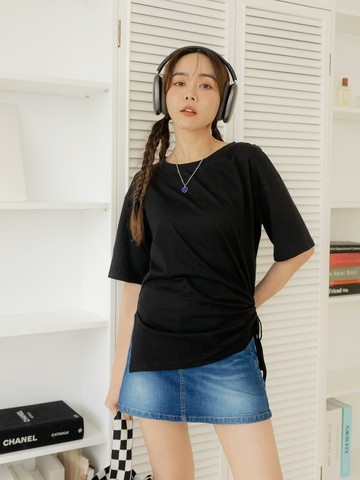 [Mukasa] DURABLE 接邊短袖短版上衣 - 空靈灰 - MUK-23043