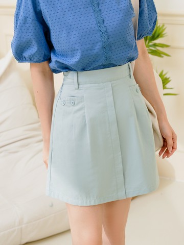 獨家訂製!單釦後鬆緊前打褶短裙 EX25030591【現貨】