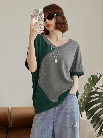 透膚網紗拼接合身短袖上衣
