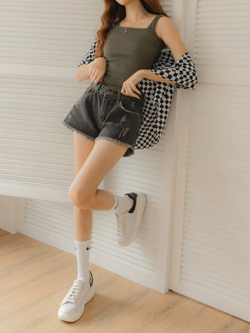 【N9565J】立體抓皺洗舊刷色牛仔短褲 (UC1834)