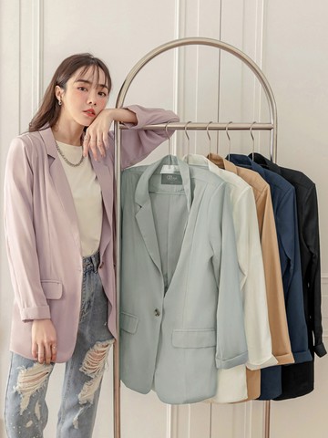 雲朵自訂款-包釦後開衩微墊肩西裝外套