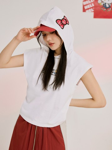 KITTY 花FUN.蝴蝶結印花連帽短TEE