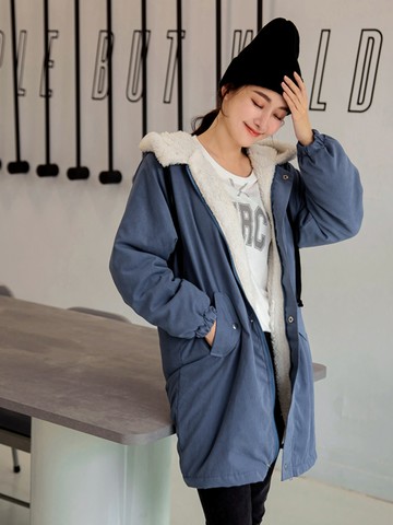 內裡羊羔絨抽繩連帽長版外套