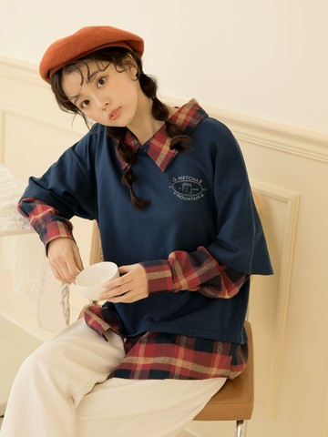 咖啡廳家族.磅蛋糕先生假兩件格紋上衣