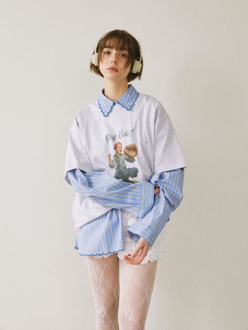 棉花糖捲邊上衣-淺紫【KT223505】