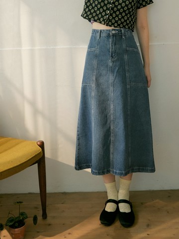 Back to Green- 復古丹寧長裙 車線側口袋//ds-04 vintage skirt