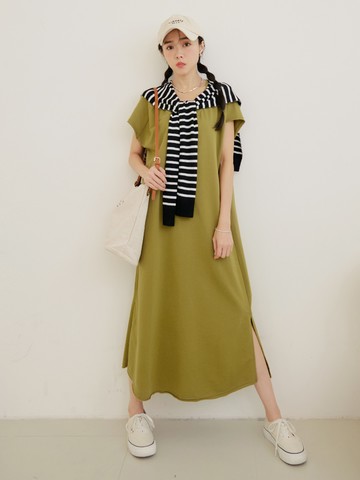 線條插畫洋裝 萊姆黃