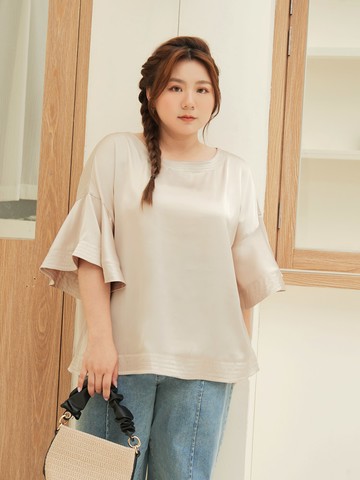 光澤車線落肩傘袖上衣
