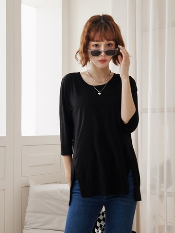 日質筆記天竺棉不收邊長袖 - 2色 - 黑