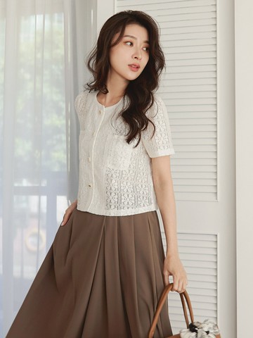 【SET ITEM】立體蕾絲摺邊泡泡袖開襟罩衫+內搭背心(01000698500) - earth music&ecology
