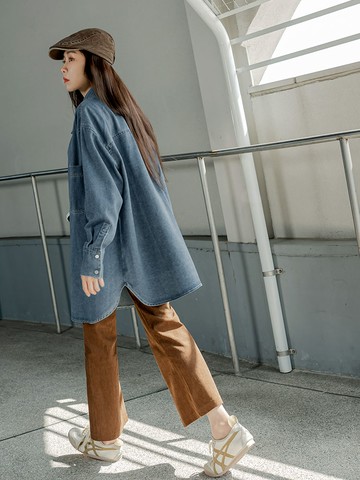 海雲台天絲長版襯衫洋裝 - 2色 - 淺灰綠